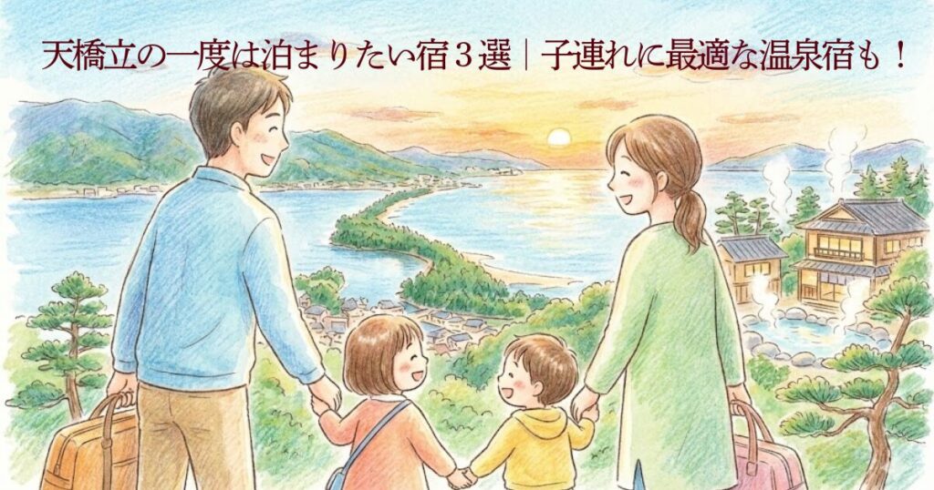せっかくの家族旅行、宿選びで失敗して雰囲気を台無しにしたくない…。 そんな風に、夜な夜なスマホで検索を繰り返して疲れていませんか? 日本三景の一つ、天橋立。 絶景を楽しみたい一方で、子連れだと「周りに迷惑をかけないか」「食事や設備は大丈夫か... -