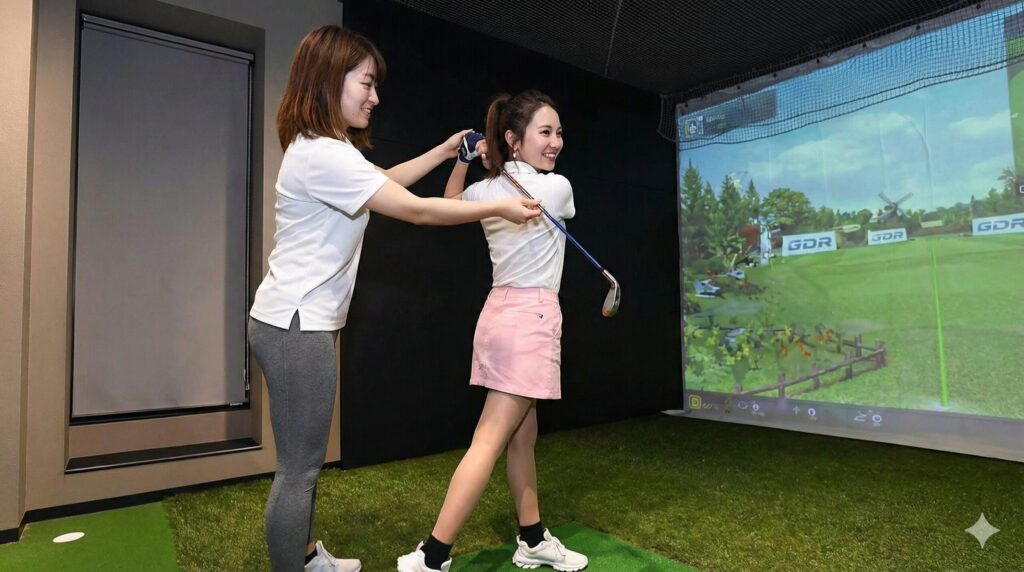 - シミュレーターでの可視化: 自分のスイングが画面に映し出されるので、「今の動き、どこが悪かった?」が一目瞭然。