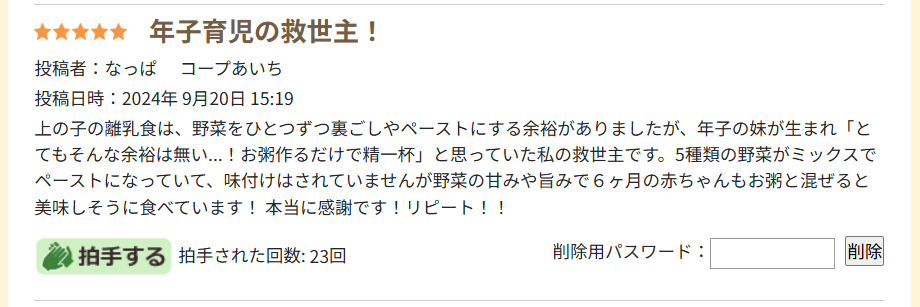 - コープデリ離乳食が赤ちゃんに安全な5つの理由と、実際の口コミ評判
