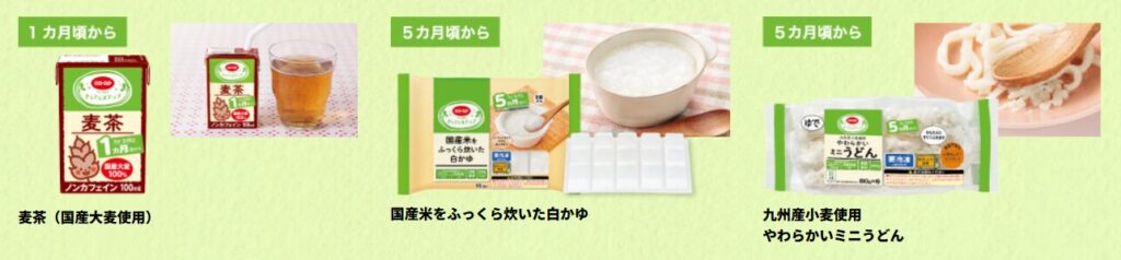 特に離乳食初期から完了期(生後5~18ヶ月頃)は、商品ラインナップが充実しています。