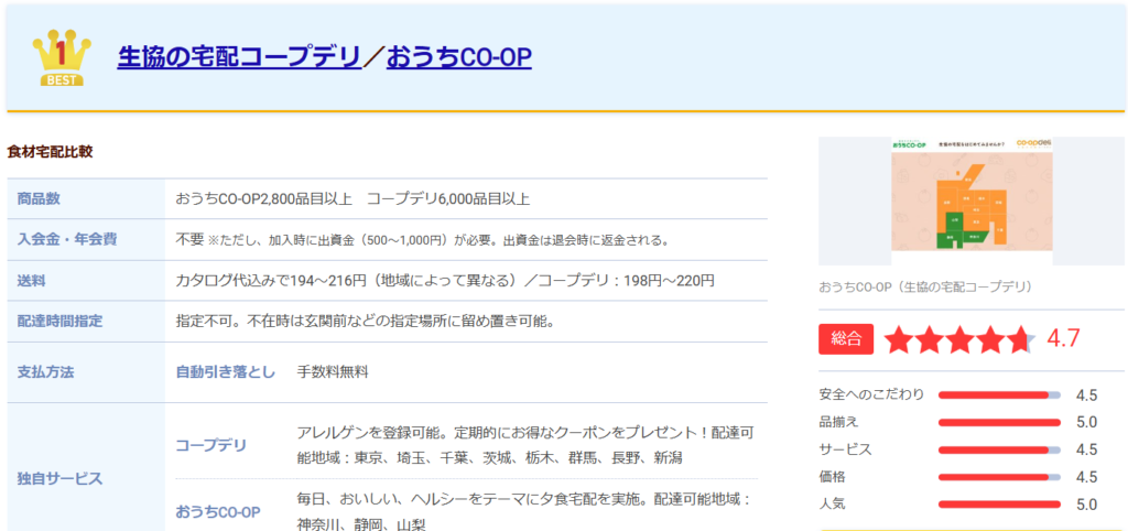 コープデリは「クチコミランキング」食材宅配部門で1位!