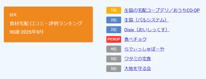コープデリは、クチコミランキング「食材宅配部門」(2025年9月)で競合各社を抑えて総合1位。