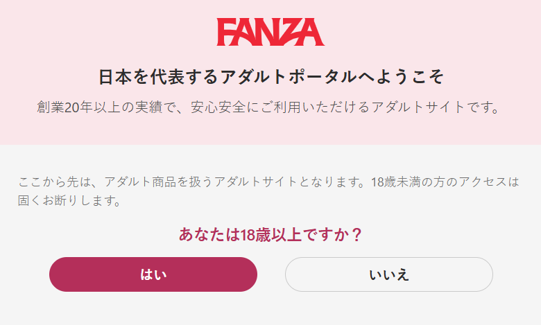 次に、FANZAのサービスを利用するために年齢確認を行います。これは初回のみ必要です。