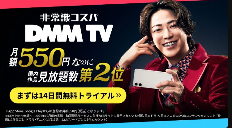 無料トライアルを活用して、まずはFire TV Stick+DMM TVで大画面視聴を体験してみましょう。