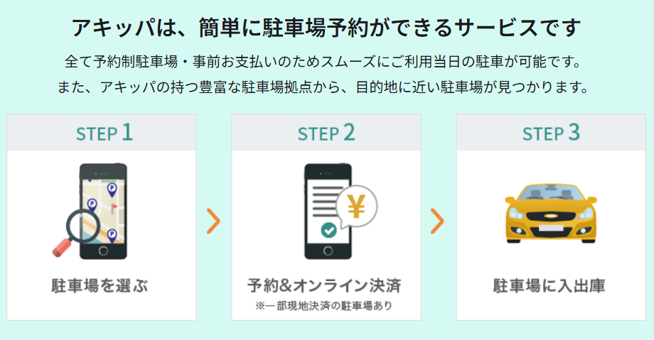 特徴現地のコインパーキング予約サービス(特P・akippa)