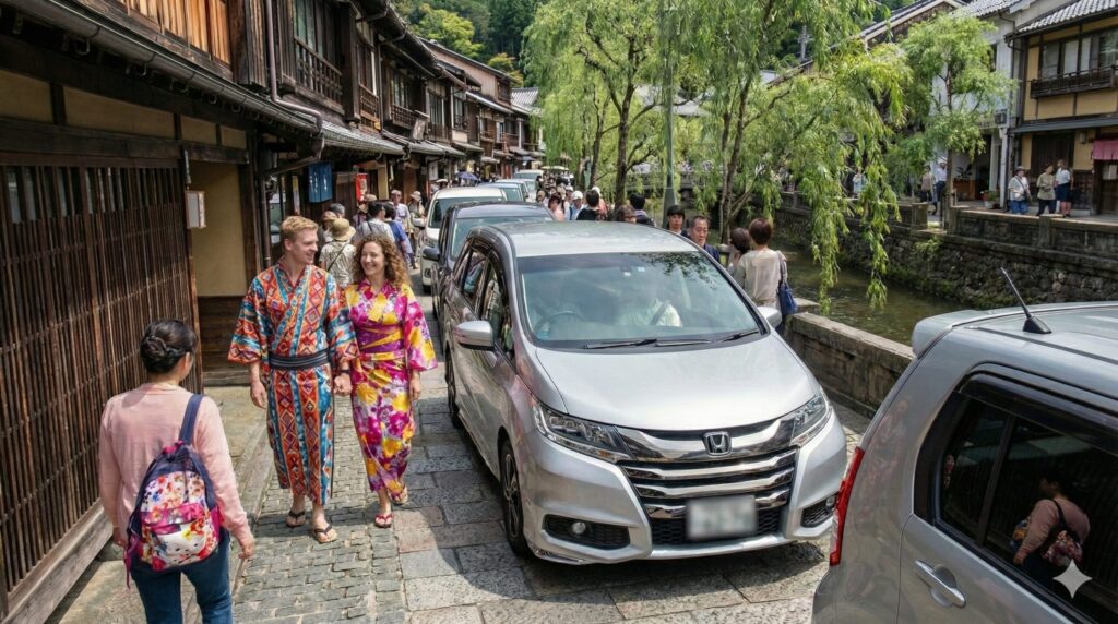 • 城崎温泉の道路は非常に狭く、観光客も多いため、運転に不慣れな場合はリスクが高い。
