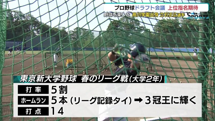 創価大学では早くから中軸を任され、リーグ戦・全国大会で長打力を発揮。