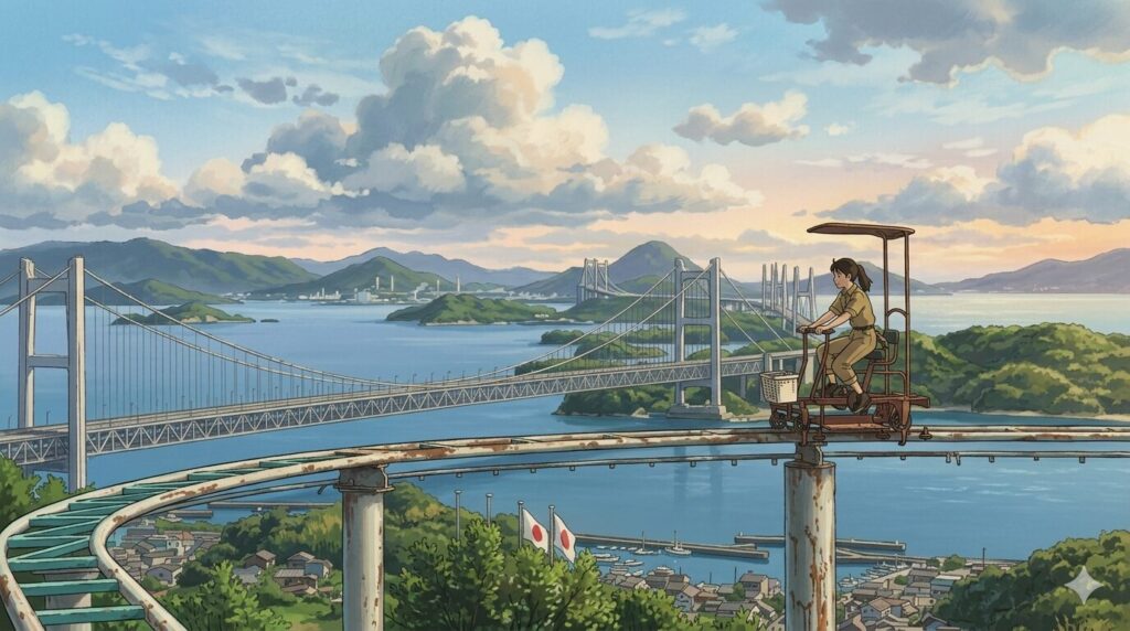 瀬戸内海を一望しながら漕ぐ名物「スカイサイクル」は、サビによる軋みも相まって日本一怖いと話題。さらに中四国唯一のバンジージャンプなど、絶叫マニアを全国から引き寄せるキラーコンテンツを所持しています。