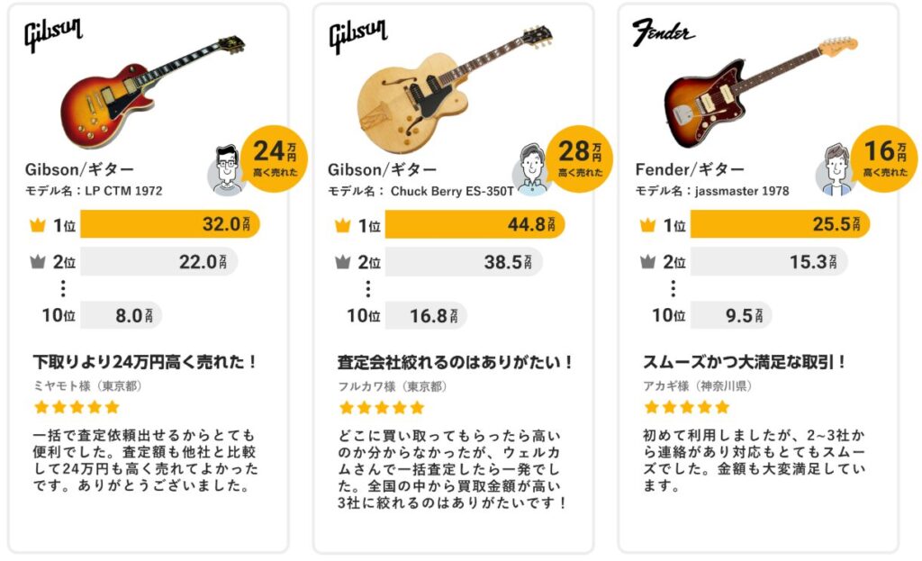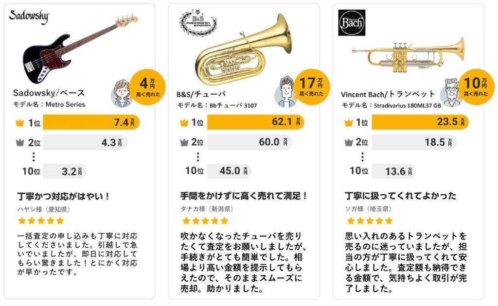 上位に食い込みたい業者たちは、あなたの楽器を逃したくないからこそ、一番いい条件を最速で提示してくる。